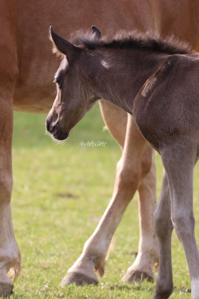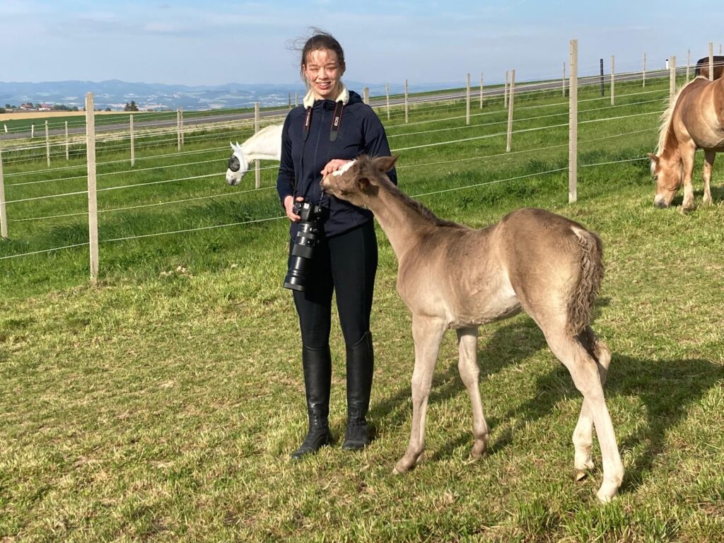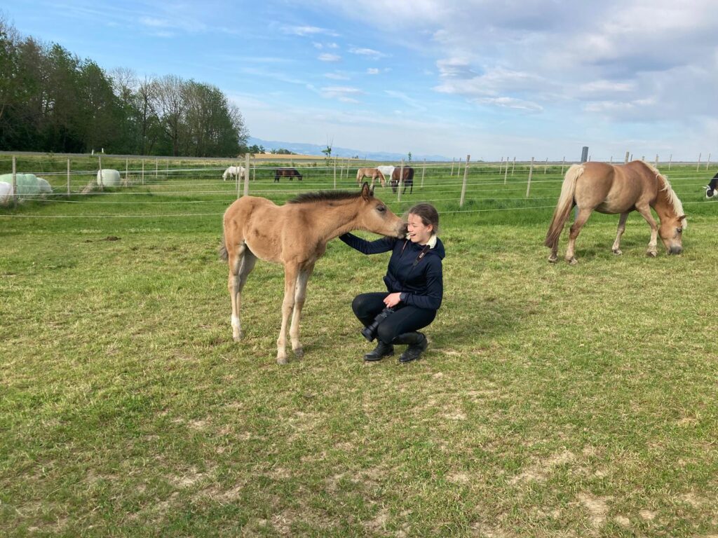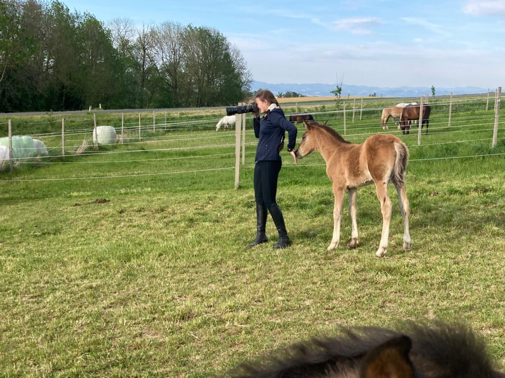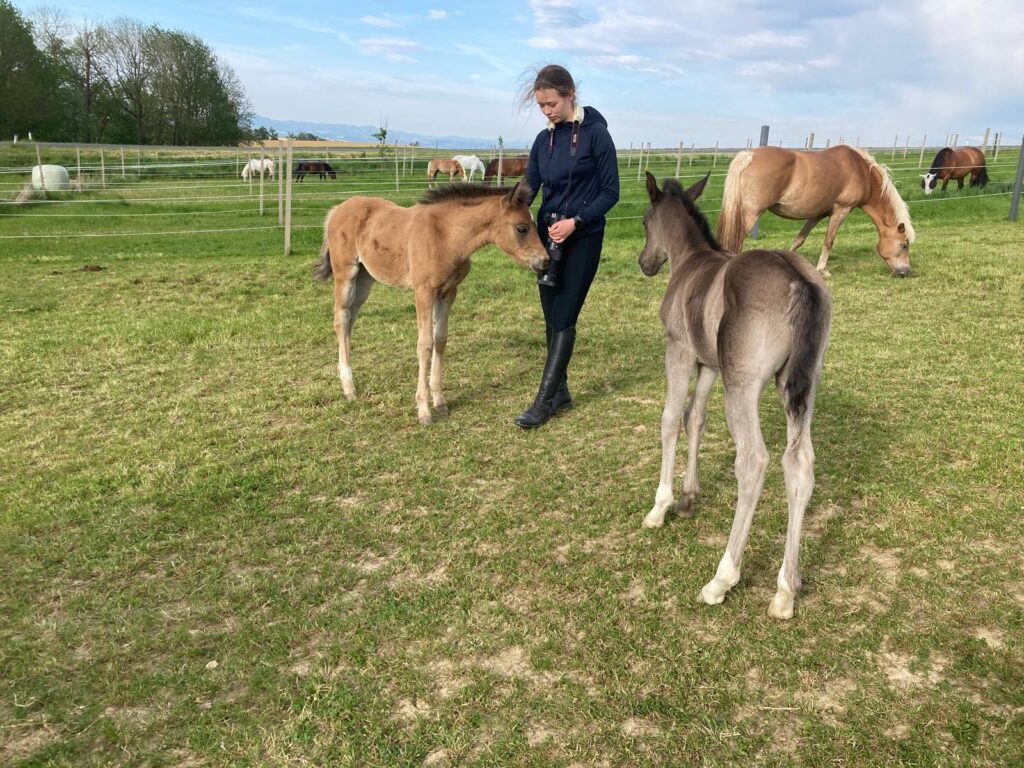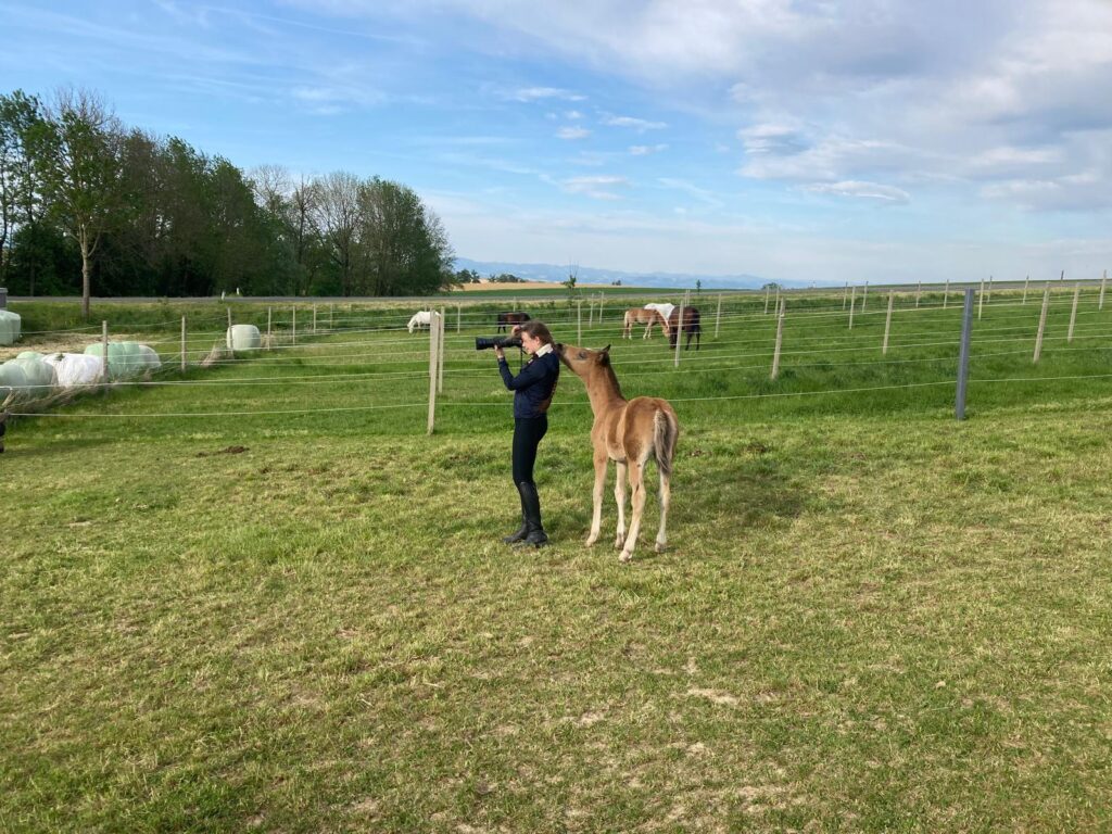 Da die Fohlensaison im vollen Gange war, begab ich mich auf die Fohlenkoppel, um ein paar Momente mit den knuffigen Babys einzufangen. Diese fanden mich sehr interessant und mussten mich zuerst einmal natürlich gründlich beschnuppern und beknabbern. Trotz der erschwerten Arbeitsbedingungen durch neugierige Fohlen konnte ich einige beeindruckende Fotos sowie blaue Flecken mit nach Hause nehmen.